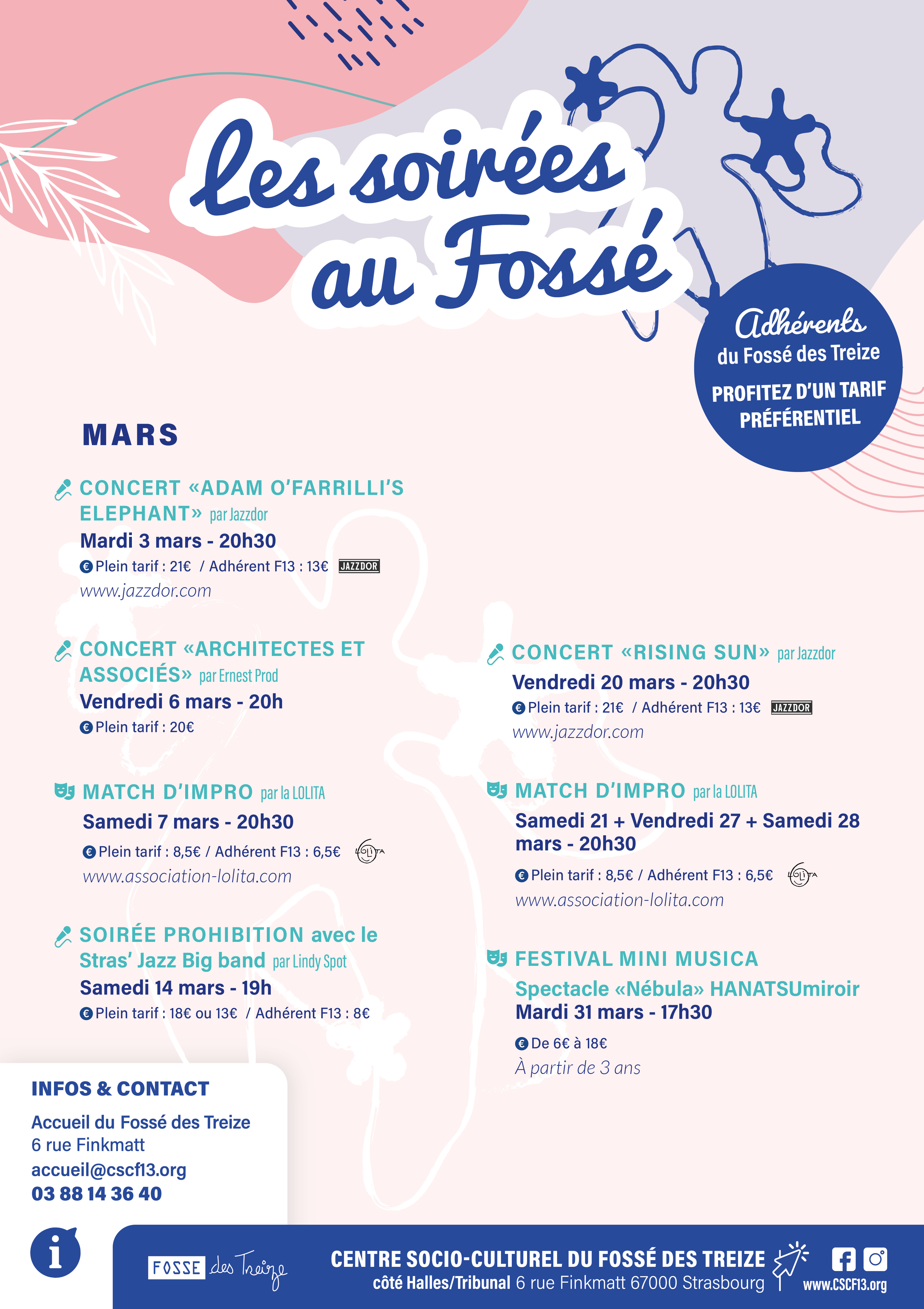 Pour découvrir les événements organisés par le Fossé des Treize, n’hésitez pas à parcourir les pastilles ci-dessous !