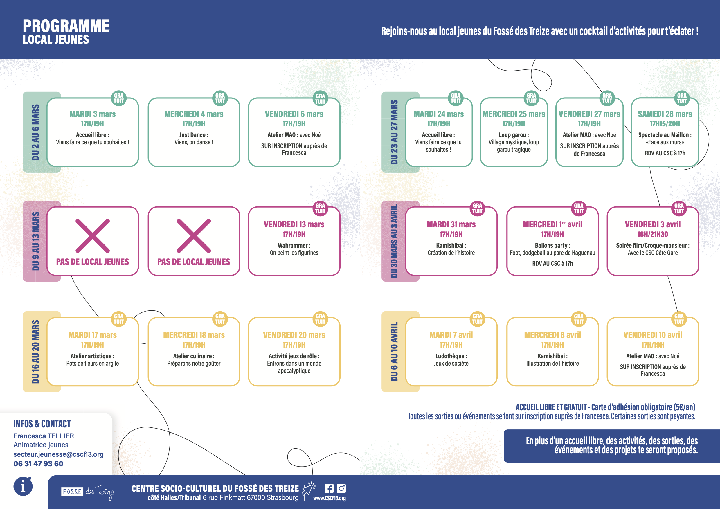 • Programme des mercredis (CYCLE 4 : de mars à avril 2026)